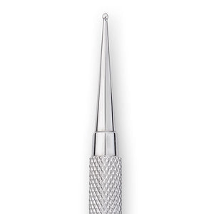 - fabricado en acero inoxidable pulido INOX - tiene dos puntas diferentes con bolas de 1,2 y 1,5 mm - mango ligeramente acanalado para evitar resbalones en la mano durante el trabajo - longitud total de la herramienta 12,4 cm - puede desinfectarse y esterilizarse por cualquier medio (químico, térmica, química y térmica)