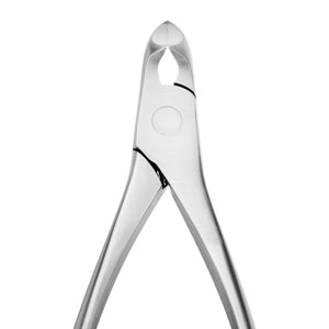 Las hojas sólidas y curvas son perfectas para cortar cutículas o uñas aún más duras . Su forma facilita la realización de tratamientos incluso en lugares de difícil acceso. Las mordazas de los alicates se conectan mediante el método de unión solapada, lo que les permite conectarse perfectamente durante el uso, asegurando un corte extremadamente preciso . Los alicates tienen una protección de hoja adecuada.