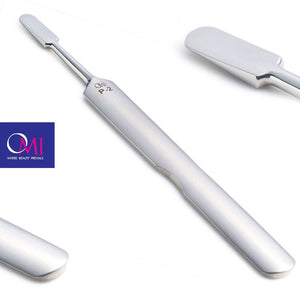 El empujador de cutículas OMI P2 está fabricado con una hoja especialmente diseñada; Acabado satinado con elementos pulidos.