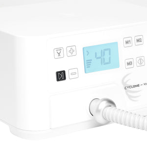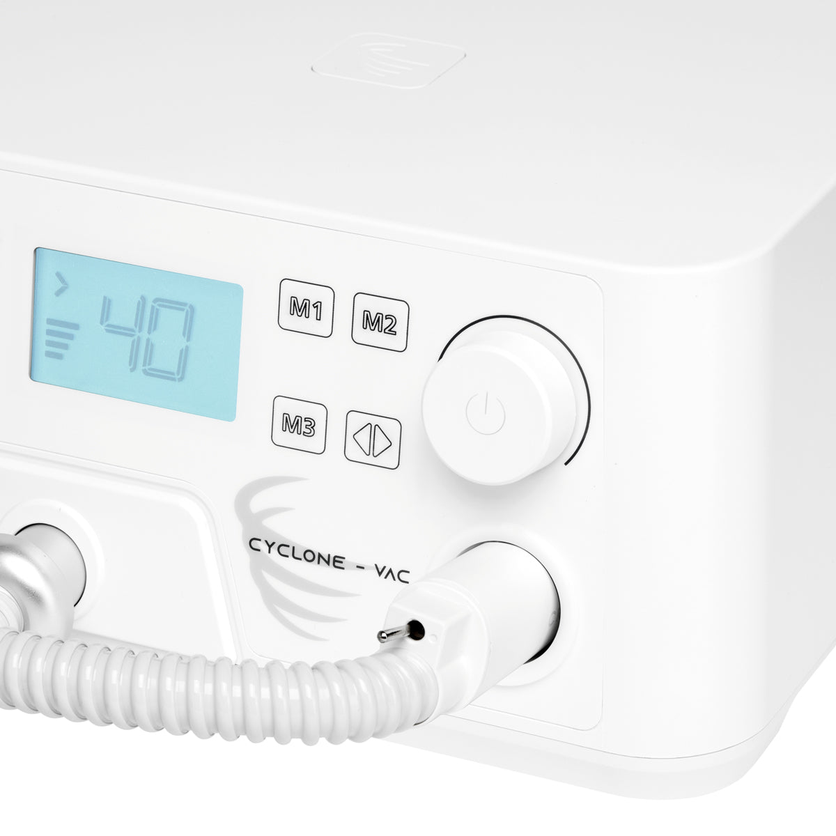 Una protección pulmonar adecuada es la clave para un trabajo responsable y seguro como podólogo y para mantener altos estándares de higiene en la consulta. La alta potencia de succión del dispositivo asegura que absorba perfectamente todo el polvo generado durante los tratamientos . También es posible ajustar la absorción en cinco niveles y desactivar esta función si es necesario.
