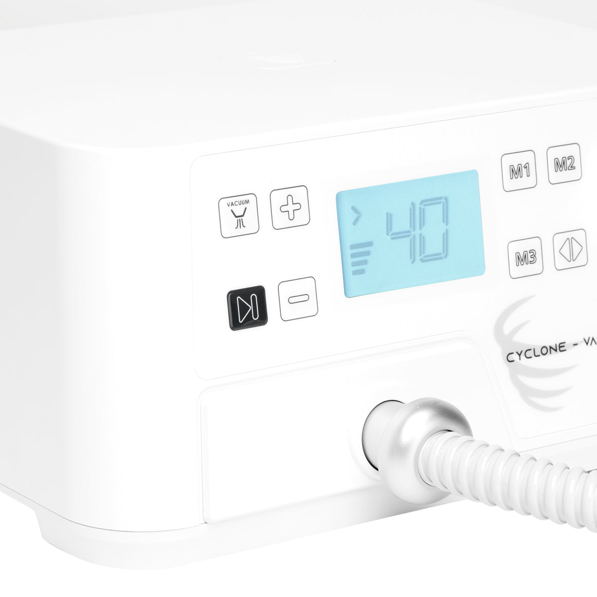 Este estuche estético y futurista en tonos blancos encaja perfectamente en cualquier interior. Un lugar especial para apoyar la cabeza permite un trabajo mucho más cómodo y los pies antideslizantes garantizan la estabilidad del dispositivo durante el uso. La fresadora Saeyang Cyclone-Vac con absorbente tiene una garantía de 12 meses .