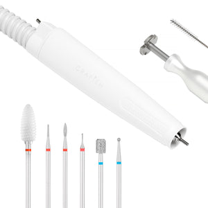 Los prácticos accesorios incluidos facilitan mucho su trabajo. El cabezal preciso con recipiente y bolsa de filtro de repuesto garantiza un uso seguro y protege contra la inhalación de patógenos dañinos. El pedal le permite ajustar la rotación del cabezal de fresado durante los tratamientos sin utilizar las manos. El set también incluye un juego de cortadores que permite realizar cómodamente diversos tratamientos de pedicura y un soporte fabricado en plástico especial que facilita la limpieza. Diferentes formas, materiales y gradaciones de cortadores permiten elegir la herramienta adecuada para el servicio que se realiza en un momento determinado y el lugar que se desarrolla. Las herramientas incluidas para limpiar el cabezal y retirar las cuchillas garantizan un fácil mantenimiento de la máquina en buen estado y facilitan su uso.