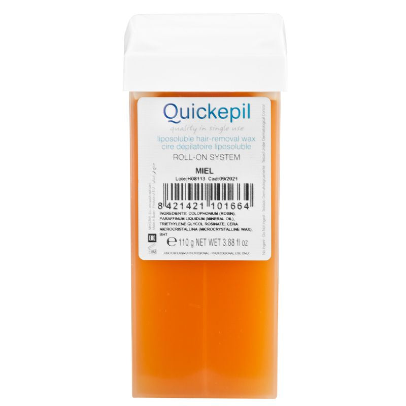 Cartucho de Cera - Cartucho de Recarga en Rollo Sistema Roll-On Quickepil fue desarrollado específicamente para esteticistas que buscan excelentes resultados. Como la cera sólo se aplica en una capa fina, se enfría cuando entra en contacto con la piel. Esto minimiza la quema de la piel. La cera se elimina fácilmente con tiras. Cera universal para todo tipo de pieles a base de cera de abejas.