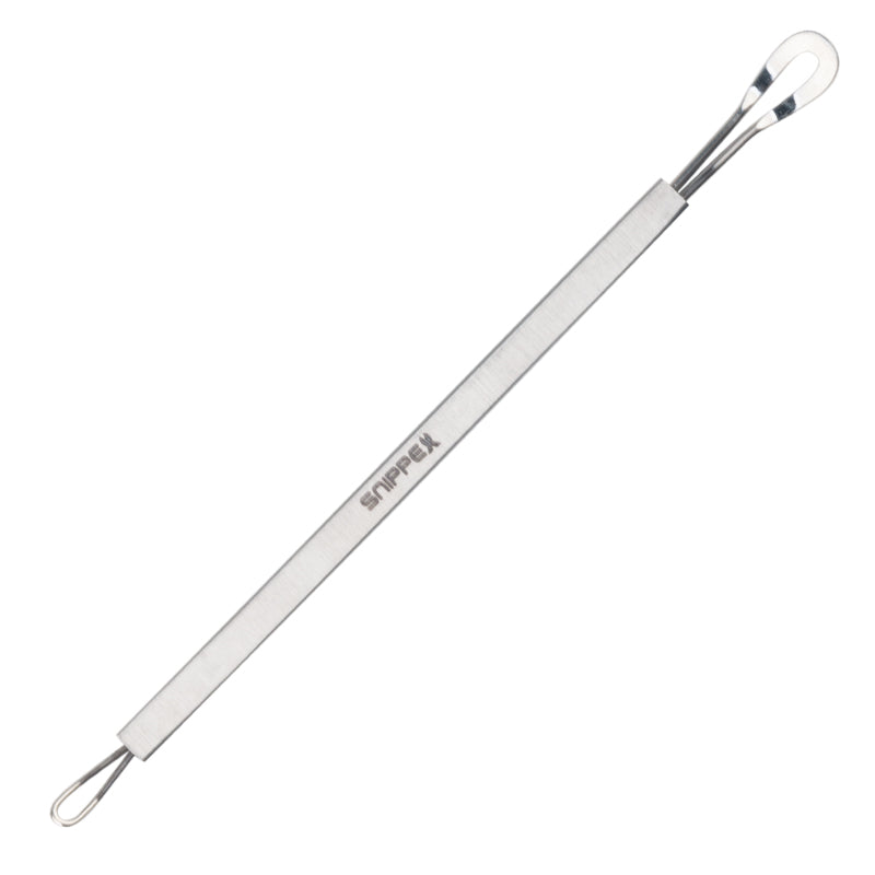 El exprimidor de comedones Uny es necesario para limpiar mecánicamente la piel de puntos negros abiertos y cerrados. Ideal para lugares de difícil acceso (nariz, oreja). El instrumento está fabricado en acero quirúrgico inoxidable y tiene dos asas de diferentes diámetros.
