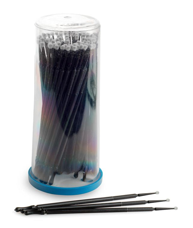 Las microfibras sin fibras te permiten eliminar rápidamente las pestañas y los residuos de adhesivo gracias a su pequeña superficie. El material especial con el que están fabricadas las puntas retiene líquidos sin absorberlos, reduciendo el consumo de productos.