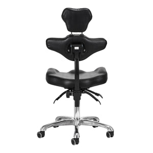 La base de cinco brazos garantiza estabilidad durante el uso. Las eficientes ruedas permiten mover la silla libremente , haciendo mucho más fácil agarrar los utensilios necesarios y colocarlos en la posición adecuada para trabajar. El asiento y el respaldo perfilados están rellenos de espuma duradera y el tapizado es de piel sintética en tonos negros. Los materiales utilizados hacen que la silla sea fácil de limpiar , lo que facilita mantener altos estándares de higiene. Gracias a su aspecto poco convencional, el taburete encaja perfectamente en la estética específica de los estudios de tatuaje .