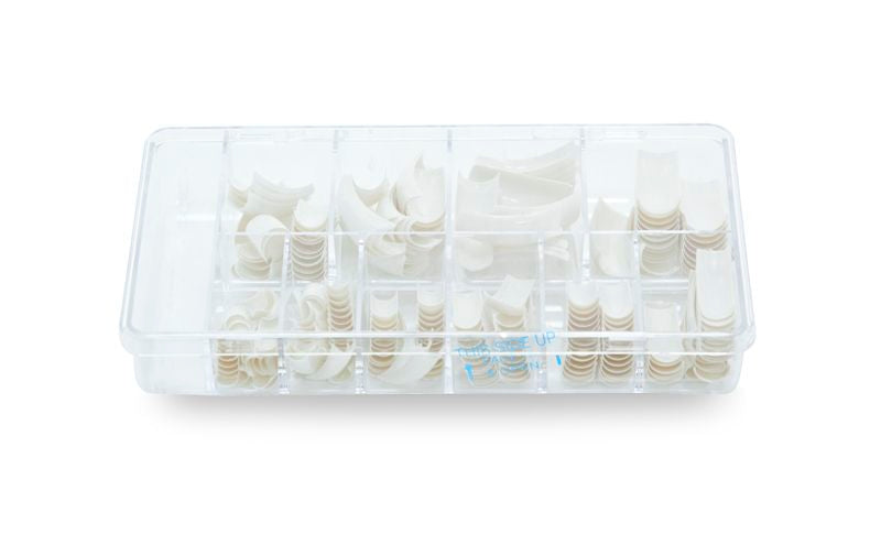 PROFESIONAL Francés americano de la serie para profesionales. Puntas excepcionalmente estéticas, elásticas y de muy alta calidad. El tamaño mínimo de la superficie adhesiva de 2 mm significa que las puntas no cubren demasiado la superficie de la uña. Con American French Tips podrás conseguir fácilmente el efecto de manicura francesa esperado por la clienta y la estilista.