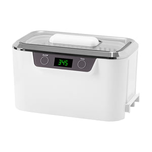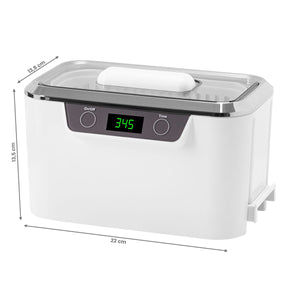 Limpiador ultrasónico para la desinfección de accesorios cosméticos, especialmente cabezales de microdermoabrasión, cortadores, etc. así como instrumental dental y cosmético. Los limpiadores ultrasónicos tienen una amplia gama de usos y pueden utilizarse en cosmética y medicina. Además de un efecto de limpieza muy alto y de alcanzar detalles inaccesibles, la limpieza por ultrasonidos no causa ningún daño mecánico a los instrumentos lavados. El limpiador ultrasónico tiene una pantalla y su estética carcasa está hecha de plástico de alta calidad.