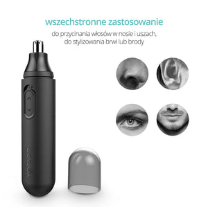 Este dispositivo es ideal para recortar el pelo de la nariz y las orejas, así como para peinar con precisión la barba y las cejas. El seguro cabezal del cuchillo 3D, que puede girar 360°, no tira de la piel ni la daña. El cabezal cortador captura con precisión incluso los pelos más pequeños. Este dispositivo es muy pequeño y silencioso. Esto permite utilizarlo cómodamente en cualquier lugar, por ejemplo mientras viaja. Información técnica: - cabezal de corte extraíble de acero inoxidable. – alto rendimiento y consumo energético económico. Fuente de alimentación: una batería AA. Dimensiones: 13cm x 3cm Peso neto: 45g