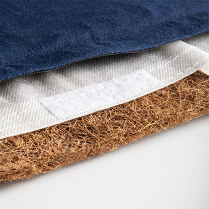 Die Matte ist aus hochwertigen Materialien hergestellt, alle verwendeten Elemente sind antiallergisch. Der Bezug der Matte besteht aus hochwertigem 100% natürlichem Leinen, im Inneren der Matte befindet sich eine dicke Einlage aus natürlicher Kokosfaser, wodurch die Matte natürlich und umweltfreundlich ist. Die Faser ist latexiert, so dass sie keine Feuchtigkeit aufnimmt und die Einlage hygienisch bleibt.