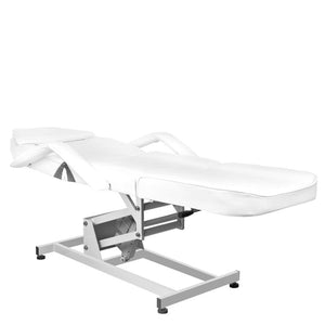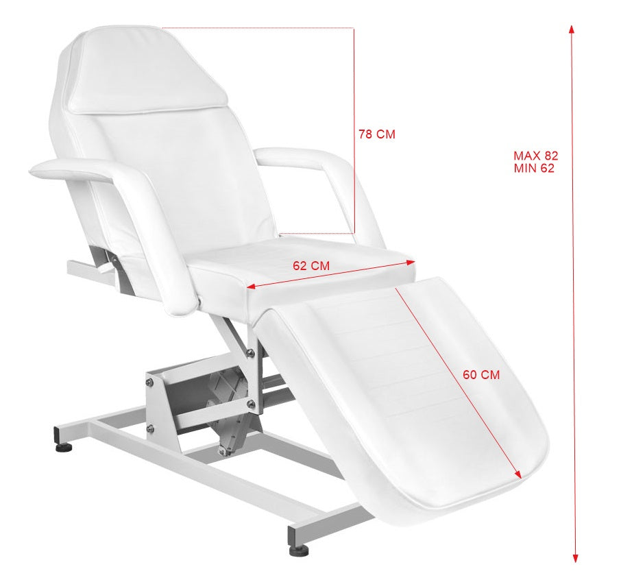 Die Sitzhöhe (oben – unten) der Kosmetikliege kann mit Fernbedienung verstellt werden. Es besteht auch die Möglichkeit, die Neigung der Rückenlehne und Fußstützen manuell zu verstellen. Ein bequemer Kosmetiksessel (bis 180 Grad ausklappbar) kann erfolgreich als Liege verwendet werden. In der Kopfstütze befindet sich ein abdeckbarer Gesichtsausschnitt, der ermöglicht, in einer bequemen Position bei den Behandlungen u. a. bei der Massage zu liegen. Der Sitz ist mit einem hochwertigen und pflegeleichten Ökoleder bedeckt. Es besteht die Möglichkeit, die Armlehnen zu entfernen, was dem Kunden erleichtert, eine Position auf dem Sitz einzunehmen.