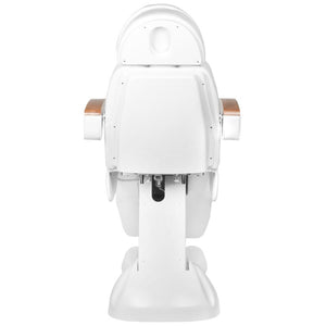 Die Kosmetikliege ist ideal für Schönheitssalons und SPA-Salons, auch für Kosmetikbehandlungen, Pediküre, für vorteilhafte Gestaltung des Gesichts mit Make-up oder für Massage geeignet. Bei Kosmetikliege können folgende Teile elektrisch eingestellt werden: - Höhe der Kosmetikliege - Rückenlehne - Neigungswinkel des Sitzes (Wiege) - Fußstützen Ein vollständiges Fernbedienen erleichtert ausgezeichnet die Arbeit. Die Bespannung der Kosmetikliege ist leicht zu reinigen, aus dem Ökoleder hergestellt und erfüllt die strengen EU-Anforderungen. Darüber hinaus sind die Armlehnen mit Holz bedeckt und bei Bedarf leicht zu demontieren. Der Gesichtsausschnitt in der Kopfstütze ermöglicht, eine Massage durchzuführen. Die Kosmetikliege ist in Weiß erhältlich.