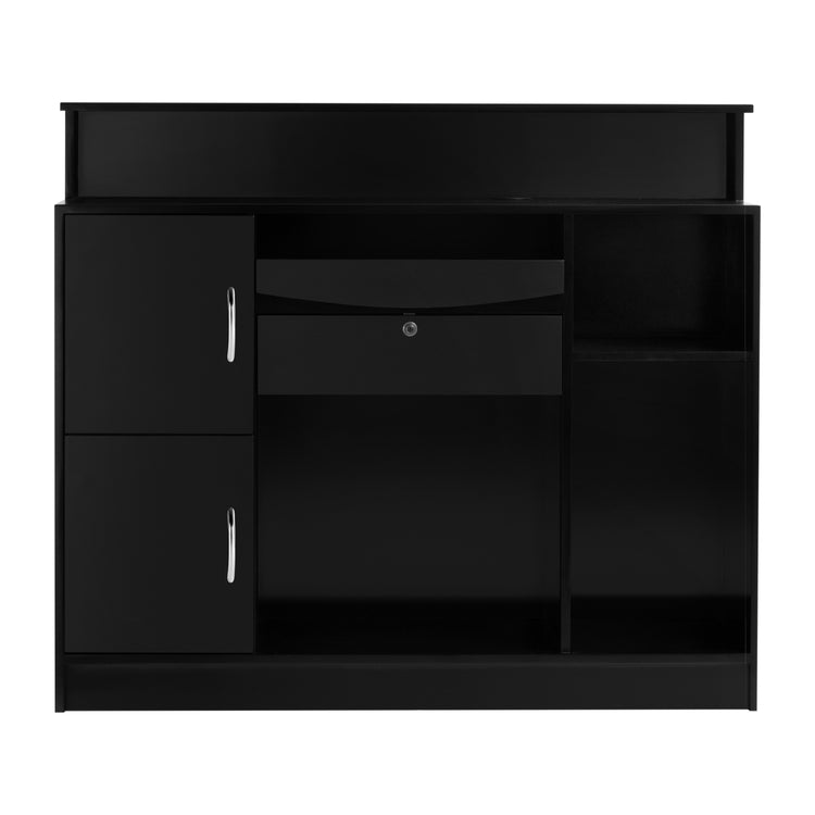 Die Rezeption ist so konzipiert, dass sie das geräumigste und praktischste Möbelelement ist. Für eine bequeme Bedienung wurde es ausgestattet mit: drei verschiedenen Größen von offenen Regalen, einem ausziehbaren Regal, einer abschließbaren Schublade und zwei abschließbaren Schränken mit ästhetischen Griffen in Silbertönen. Die Räume wurden so geplant, dass sie die Organisation und Aufrechterhaltung der Ordnung an dem Ort erleichtern, an dem alle wichtigen Dokumente gesammelt werden.