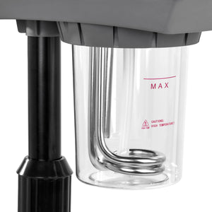 Der Vapozone besteht aus Kunststoff in Schwarztönen, wodurch das Gerät leicht sauber zu halten ist. Das Stativ ist mit einer einfachen Höhenverstellung im Bereich von 78-95 cm ausgestattet, mit der Sie die Ausrüstung auf die richtige Höhe einstellen können, um den Arbeitskomfort der Person zu gewährleisten, die den Eingriff durchführt. Die Vaposondüse kann frei gedreht werden, was den Bereich der möglichen Einstellung erhöht. Die vierarmige Basis mit gummierten Rädern verbessert die Beweglichkeit und erleichtert das freie Bewegen des Geräts.