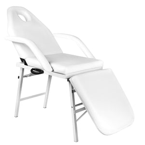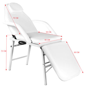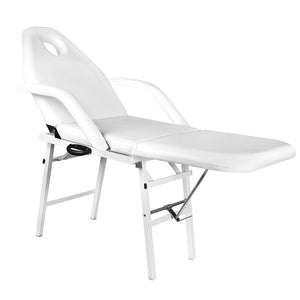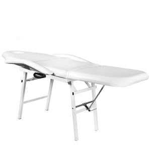 Eine Klapp-Kosmetikliege mit einem stabilen Gestell. Armlehnen und eine Kopfstütze können bei Bedarf demontiert werden. Sie wird aus hochwertigem Ökoleder hergestellt, das leicht zu reinigen und beständig gegen ausgewählte Desinfektionsmittel ist. Sie verfügt über eine manuelle Einstellung von Rückenlehne und Fußstütze. Der geringe Platzbedarf nach dem Zusammenklappen verursacht, dass sie an einem abgelegenen Ort gelagert werden kann.