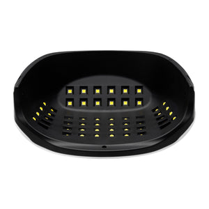 Die neueste Generation, professionelle UV / LED-Lampe, die dank der Verwendung von Dual-LED-Technologie alle Gele, Hybridlacke und andere lichthärtende Präparate schnell und gleichmäßig aushärtet. Es emittiert weißes Licht, das die Augen nicht belastet. Die C1 PLUS Lampe verfügt über eine energiesparende Lichtquelle mit hoher Leistung und einem Doppelwellenbereich von 365nm und 405nm. Zusätzlich 54 Dioden, die eine maximale Gesamtleistung von 150W ergeben! Die Lampe hat einen eingebauten Bewegungssensor, einen Timer von 10, 30, 60 und 90 Sekunden, und nach dem Start des Sensors leuchtet es kontinuierlich für bis zu 90 Sekunden. 90 Sekunden "Low Heat Mode" ist ein Modus, in dem die Lampenleistung alle 30 Sekunden allmählich ansteigt. Es beseitigt das brennende Gefühl während der Anwendung von Baugelen. Großes elektronisches Display macht es einfach, die Zeit zu steuern.